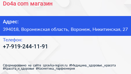 Do4a.com, магазин по адресу 394018, Воронежская область, Воронеж, Никитинская, 27 в дальнейшем Организация, размещена в следующих категориях: