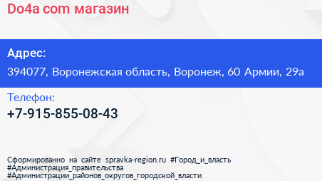 Do4a.com, магазин по адресу 394077, Воронежская область, Воронеж, 60 Армии, 29а в дальнейшем Организация, размещена в следующих категориях: