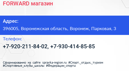 FORWARD, магазин по адресу 396005, Воронежская область, Воронеж, Парковая, 3 в дальнейшем Организация, размещена в следующих категориях: