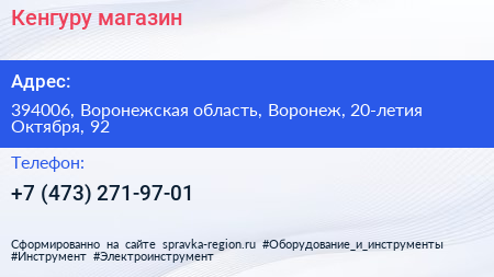 Кенгуру, магазин по адресу 394006, Воронежская область, Воронеж, 20-летия Октября, 92 в дальнейшем Организация, размещена в следующих категориях: