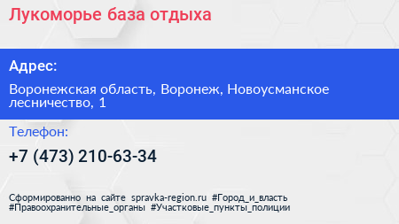 Лукоморье, база отдыха по адресу Воронежская область, Воронеж, Новоусманское лесничество, 1 в дальнейшем Организация, размещена в следующих категориях: