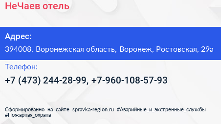 НеЧаев, отель по адресу 394008, Воронежская область, Воронеж, Ростовская, 29а в дальнейшем Организация, размещена в следующих категориях: