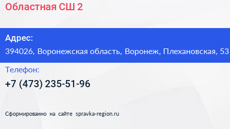 Областная СШ №2 по адресу 394026, Воронежская область, Воронеж, Плехановская, 53 в дальнейшем Организация, размещена в следующих категориях: