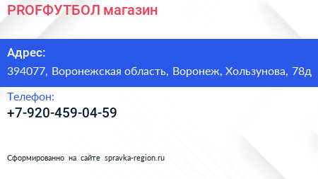 PROFФУТБОЛ, магазин по адресу 394077, Воронежская область, Воронеж, Хользунова, 78д в дальнейшем Организация, размещена в следующих категориях: