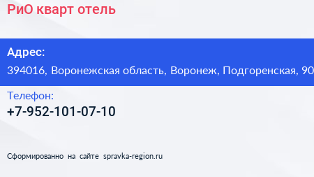 РиО, кварт-отель по адресу 394016, Воронежская область, Воронеж, Подгоренская, 90 в дальнейшем Организация, размещена в следующих категориях:
