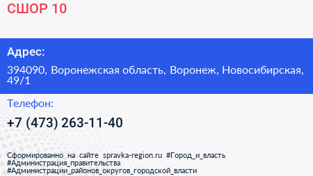 СШОР №10 по адресу 394090, Воронежская область, Воронеж, Новосибирская, 49/1 в дальнейшем Организация, размещена в следующих категориях:
