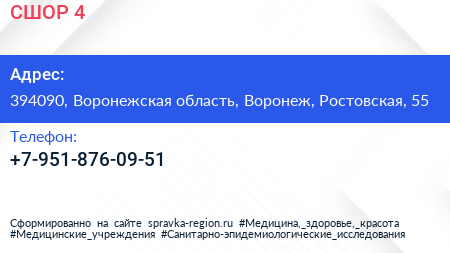 СШОР №4 по адресу 394090, Воронежская область, Воронеж, Ростовская, 55 в дальнейшем Организация, размещена в следующих категориях: