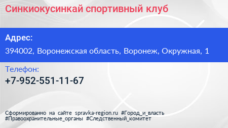 Синкиокусинкай, спортивный клуб по адресу 394002, Воронежская область, Воронеж, Окружная, 1 в дальнейшем Организация, размещена в следующих категориях: