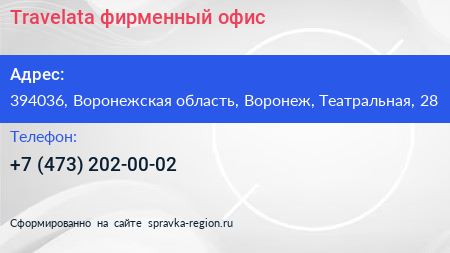 Travelata, фирменный офис по адресу 394036, Воронежская область, Воронеж, Театральная, 28 в дальнейшем Организация, размещена в следующих категориях: