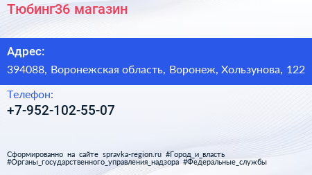 Тюбинг36, магазин по адресу 394088, Воронежская область, Воронеж, Хользунова, 122 в дальнейшем Организация, размещена в следующих категориях:
