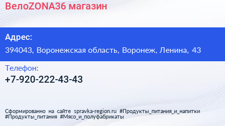 ВелоZONA36, магазин по адресу 394043, Воронежская область, Воронеж, Ленина, 43 в дальнейшем Организация, размещена в следующих категориях: