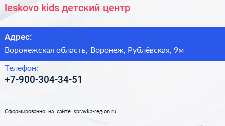 leskovo kids, детский центр по адресу Воронежская область, Воронеж, Рублёвская, 9м в дальнейшем Организация, размещена в следующих категориях: