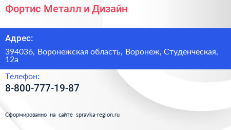 Фортис Металл и Дизайн по адресу 394036, Воронежская область, Воронеж, Студенческая, 12а в дальнейшем Организация, размещена в следующих категориях: