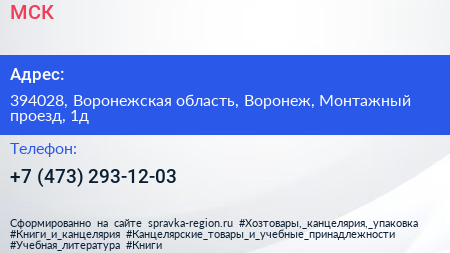 МСК по адресу 394028, Воронежская область, Воронеж, Монтажный проезд, 1д в дальнейшем Организация, размещена в следующих категориях: