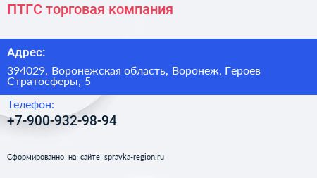 ПТГС, торговая компания по адресу 394029, Воронежская область, Воронеж, Героев Стратосферы, 5 в дальнейшем Организация, размещена в следующих категориях: