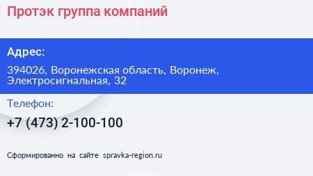 Протэк, группа компаний по адресу 394026, Воронежская область, Воронеж, Электросигнальная, 32 в дальнейшем Организация, размещена в следующих категориях: