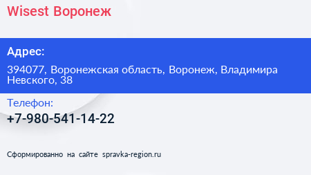 Wisest-Воронеж по адресу 394077, Воронежская область, Воронеж, Владимира Невского, 38 в дальнейшем Организация, размещена в следующих категориях: