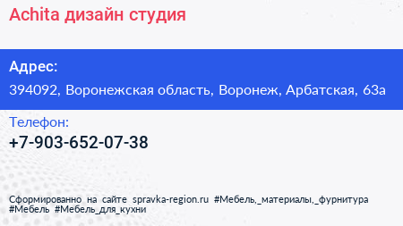 Achita, дизайн-студия по адресу 394092, Воронежская область, Воронеж, Арбатская, 63а в дальнейшем Организация, размещена в следующих категориях: