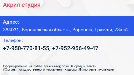 Акрил, студия по адресу 394031, Воронежская область, Воронеж, Грамши, 73а к2 в дальнейшем Организация, размещена в следующих категориях: