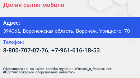 Дэлия, салон мебели по адресу 394061, Воронежская область, Воронеж, Урицкого, 70 в дальнейшем Организация, размещена в следующих категориях: