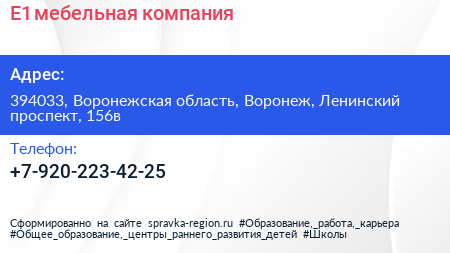 Е1, мебельная компания по адресу 394033, Воронежская область, Воронеж, Ленинский проспект, 156в в дальнейшем Организация, размещена в следующих категориях: