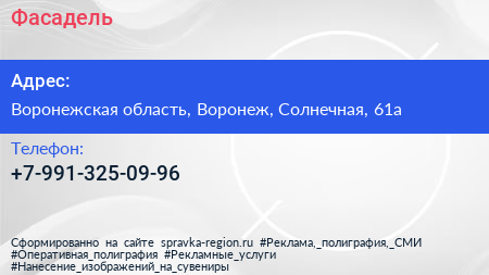 Фасадель по адресу Воронежская область, Воронеж, Солнечная, 61а в дальнейшем Организация, размещена в следующих категориях: