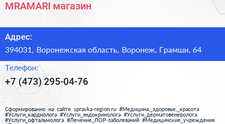 MRAMARI, магазин по адресу 394031, Воронежская область, Воронеж, Грамши, 64 в дальнейшем Организация, размещена в следующих категориях: