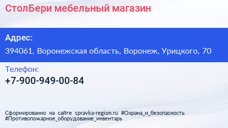 СтолБери, мебельный магазин по адресу 394061, Воронежская область, Воронеж, Урицкого, 70 в дальнейшем Организация, размещена в следующих категориях: