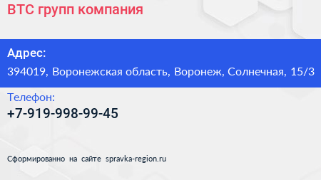 ВТС-групп, компания по адресу 394019, Воронежская область, Воронеж, Солнечная, 15/3 в дальнейшем Организация, размещена в следующих категориях: