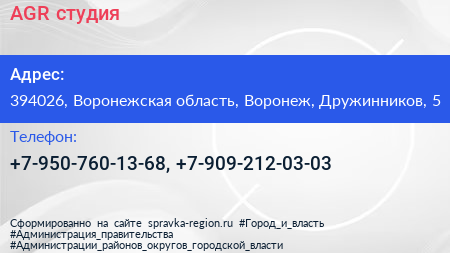 AGR, студия по адресу 394026, Воронежская область, Воронеж, Дружинников, 5 в дальнейшем Организация, размещена в следующих категориях: