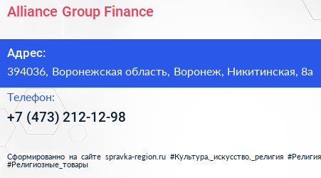 Alliance Group Finance по адресу 394036, Воронежская область, Воронеж, Никитинская, 8а в дальнейшем Организация, размещена в следующих категориях: