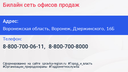 Билайн, сеть офисов продаж по адресу Воронежская область, Воронеж, Дзержинского, 16Б в дальнейшем Организация, размещена в следующих категориях: