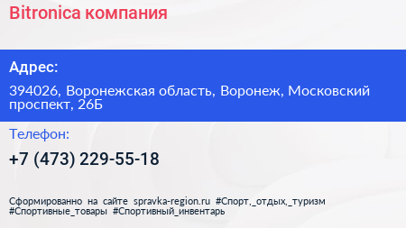 Bitronica, компания по адресу 394026, Воронежская область, Воронеж, Московский проспект, 26Б в дальнейшем Организация, размещена в следующих категориях: