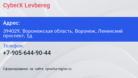 CyberX Levbereg по адресу 394029, Воронежская область, Воронеж, Ленинский проспект, 1д в дальнейшем Организация, размещена в следующих категориях: