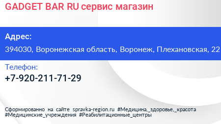 GADGET-BAR.RU, сервис-магазин по адресу 394030, Воронежская область, Воронеж, Плехановская, 22 в дальнейшем Организация, размещена в следующих категориях: