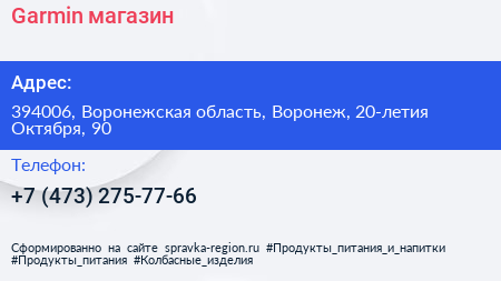 Garmin, магазин по адресу 394006, Воронежская область, Воронеж, 20-летия Октября, 90 в дальнейшем Организация, размещена в следующих категориях:
