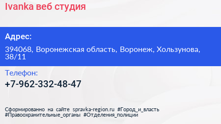 Ivanka, веб-студия по адресу 394068, Воронежская область, Воронеж, Хользунова, 38/11 в дальнейшем Организация, размещена в следующих категориях:
