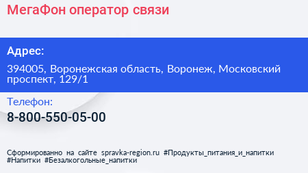 МегаФон, оператор связи по адресу 394005, Воронежская область, Воронеж, Московский проспект, 129/1 в дальнейшем Организация, размещена в следующих категориях: