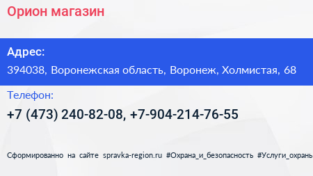 Орион, магазин по адресу 394038, Воронежская область, Воронеж, Холмистая, 68 в дальнейшем Организация, размещена в следующих категориях:
