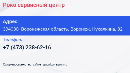 Роко, сервисный центр по адресу 394030, Воронежская область, Воронеж, Куколкина, 32 в дальнейшем Организация, размещена в следующих категориях: