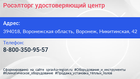Росэлторг, удостоверяющий центр по адресу 394018, Воронежская область, Воронеж, Никитинская, 42 в дальнейшем Организация, размещена в следующих категориях: