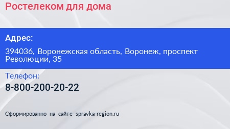 Ростелеком для дома по адресу 394036, Воронежская область, Воронеж, проспект Революции, 35 в дальнейшем Организация, размещена в следующих категориях: