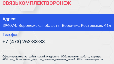 СВЯЗЬКОМПЛЕКТВОРОНЕЖ по адресу 394074, Воронежская область, Воронеж, Ростовская, 41л в дальнейшем Организация, размещена в следующих категориях: