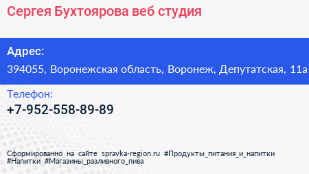 Сергея Бухтоярова, веб-студия по адресу 394055, Воронежская область, Воронеж, Депутатская, 11а в дальнейшем Организация, размещена в следующих категориях: