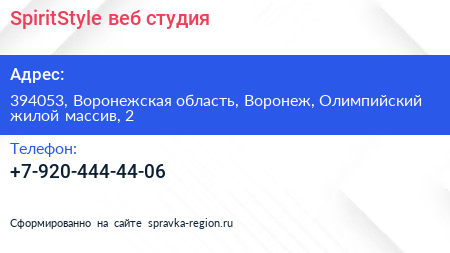 SpiritStyle, веб-студия по адресу 394053, Воронежская область, Воронеж, Олимпийский жилой массив, 2 в дальнейшем Организация, размещена в следующих категориях: