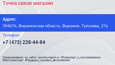 Точка связи, магазин по адресу 394076, Воронежская область, Воронеж, Туполева, 27а в дальнейшем Организация, размещена в следующих категориях: