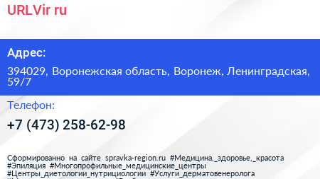 URLVir.ru по адресу 394029, Воронежская область, Воронеж, Ленинградская, 59/7 в дальнейшем Организация, размещена в следующих категориях: