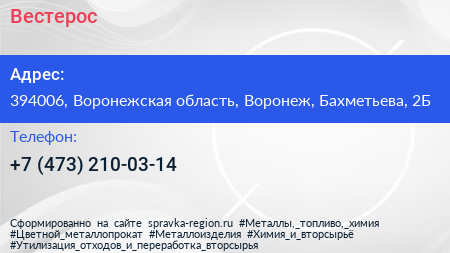 Для связи с организацией воспользуйтесь номером телефона: +7 (473) 210-03-14. Пн: c 08:00-18:00, Вт: c 08:00-18:00, Ср: c 08:00-18:00, Чт: c 08:00-18:00, Пт: c 08:00-18:00, Сб: выходной, Вс: выходной, вы можете обратиться в эту организацию.