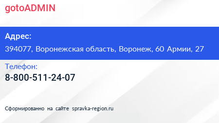 gotoADMIN по адресу 394077, Воронежская область, Воронеж, 60 Армии, 27 в дальнейшем Организация, размещена в следующих категориях: