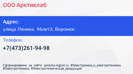 ООО «Арктиклаб» по адресу улица Ленина, 96литЗ, Воронеж в дальнейшем Организация, размещена в следующих категориях: